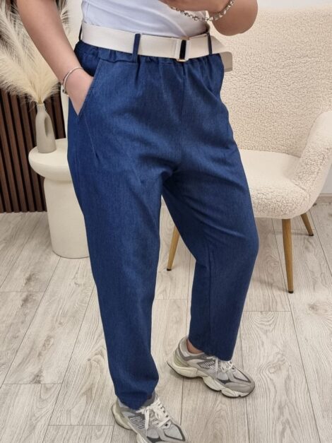 Kelnės su tampriu liemeniu. Turi kišenes šonuose. Siaurėjantis modelis.